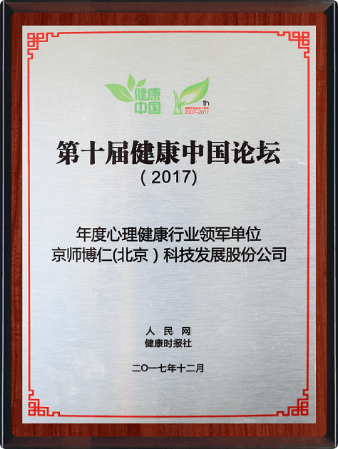 第十届健康中国论坛是由人民日报社、国家卫生与计划生育委员会指导,人民网、健康时报社主办,清华大学、北京大学、复旦大学所属多家健康研究机构提供学术支持,“2017年度心理健康行业领军单位”评选是第十届健康中国论坛的核心评选活动,由大数据提名,舆情筛选,专家委员会评审,最终产生获奖榜单,此奖项旨在表彰在推动落实健康中国战略中有着突出贡献的单位。